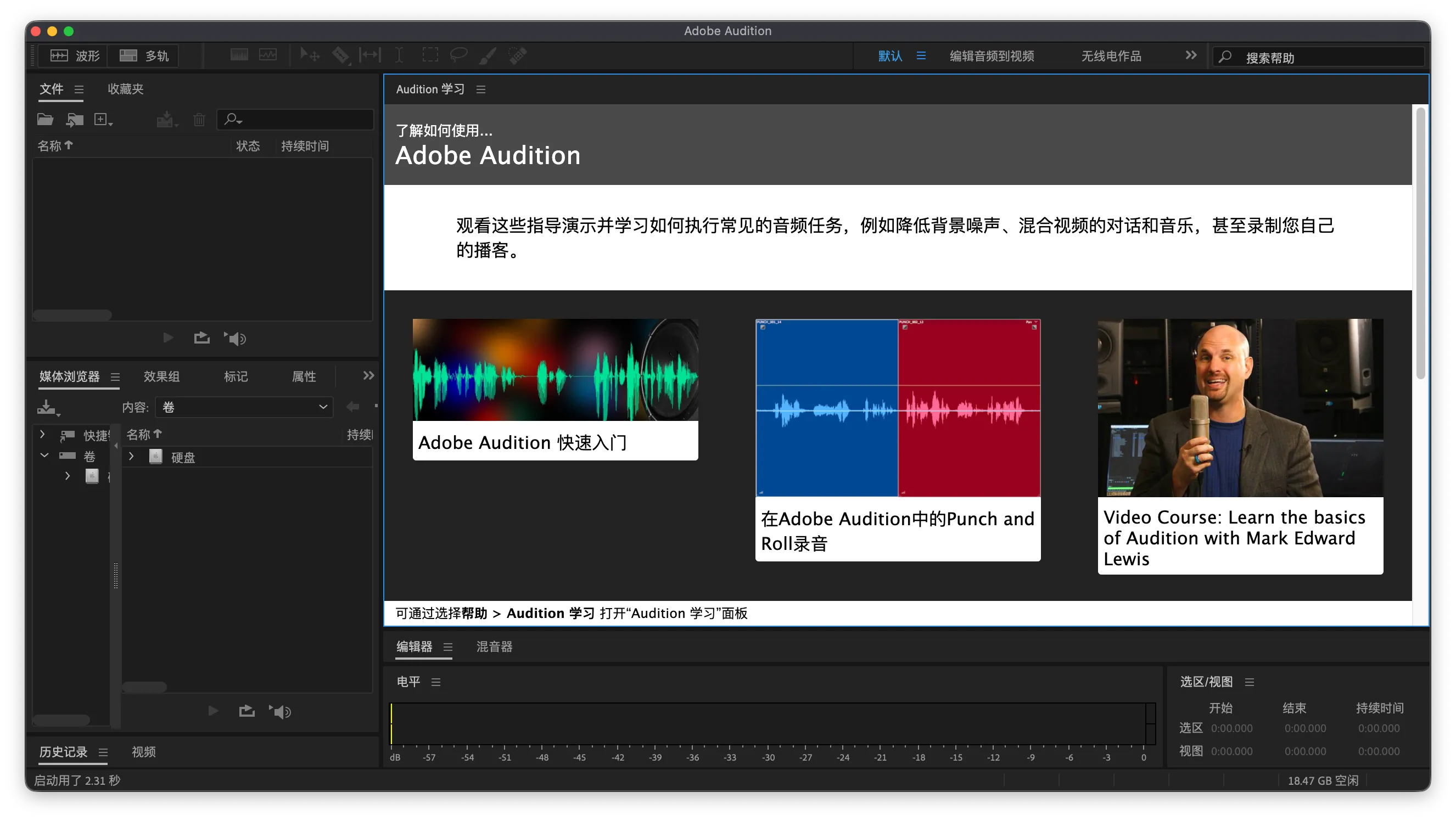 Audition 是一款完善的工具集,其中包含用于创建、混合、编辑和复原音频内容的多轨、波形和光谱显示功能。这一强大的音频工作站旨在加快视频制作工作流程和音频修整的速度,并且还提供带有纯净声音的精美混音效果。