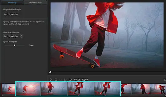 透过视讯速度设计师,只要左右拉动加速器就能调整视频速度,製作出慢动作或快转的效果。